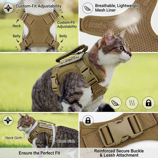 Escape-Proof Tactical Cat & Small Dog Harness Set with Bungee Leash