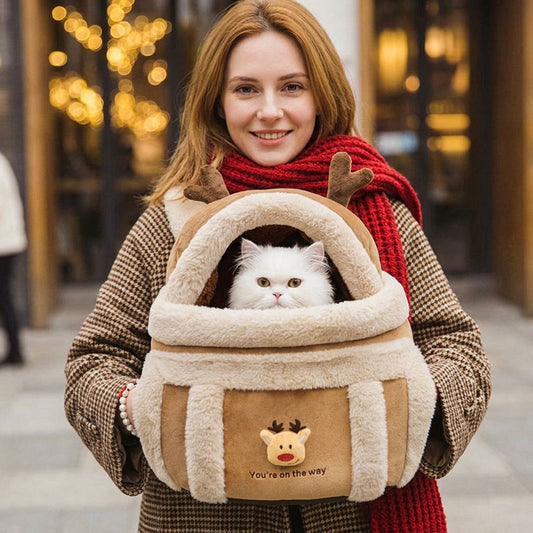 Quilted Winter Cat Carrier Sling Bag Warm Crossbody for Small Pets