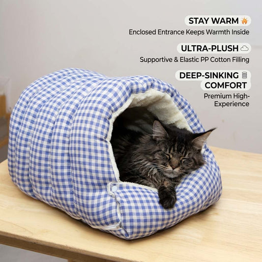Cozy Gingham Cave Pet Bed for Cats & Small Dogs